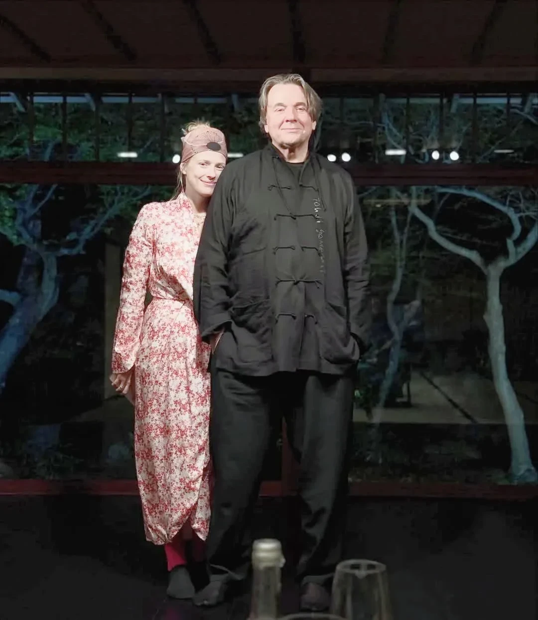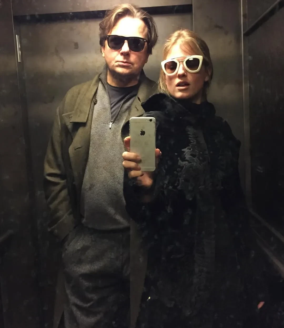 На одном из фото супруги были запечатлены, по всей видимости, на тематической вечеринке в нарядах в восточном стиле. На другом актриса запечатлела себя с мужем в лифте.