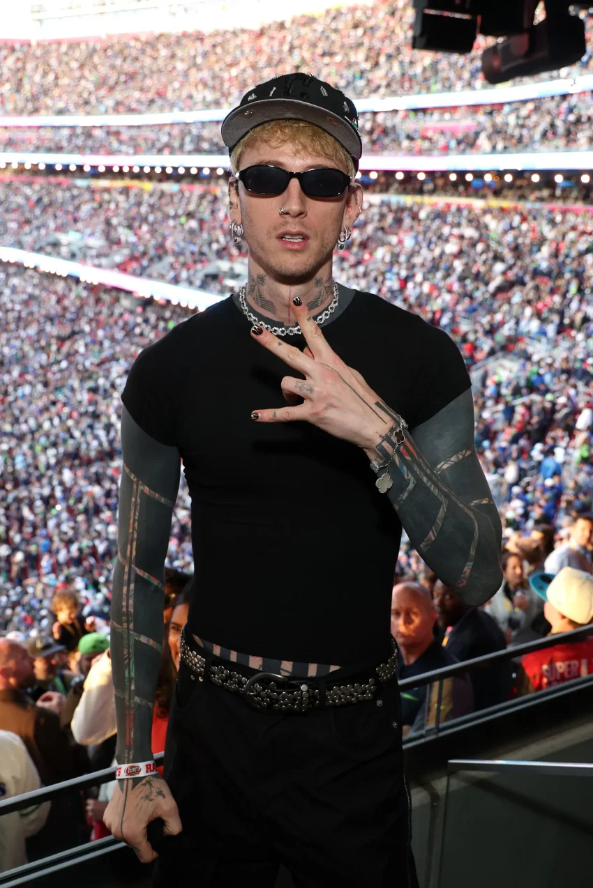 Machine Gun Kelly (Колсон Бэйкер)Открыла матч группа Green Day, а во время выступления триумфатора "Грэмми" и хедлайнера Суперкубка Bad Bunny (в образе Zara) на сцену также вышли Леди Гага и Рики Мартин. Bad Bunny поёт исключительно на испанском языке, а его номер стал данью латиноамериканской культуре. Также во время выступления певца поженилась реальная пара. Поклонники Bad Bunny ранее пригласили его на свою свадьбу, а он предложил им пожениться прямо во время Суперкубка. Как отмечают журналисты, Дональд Трамп назвал выступление артиста (который не поддерживает президента США) худшим в истории, а победу в финале Суперкубка одержала команда "Сиэтл Сихокс".