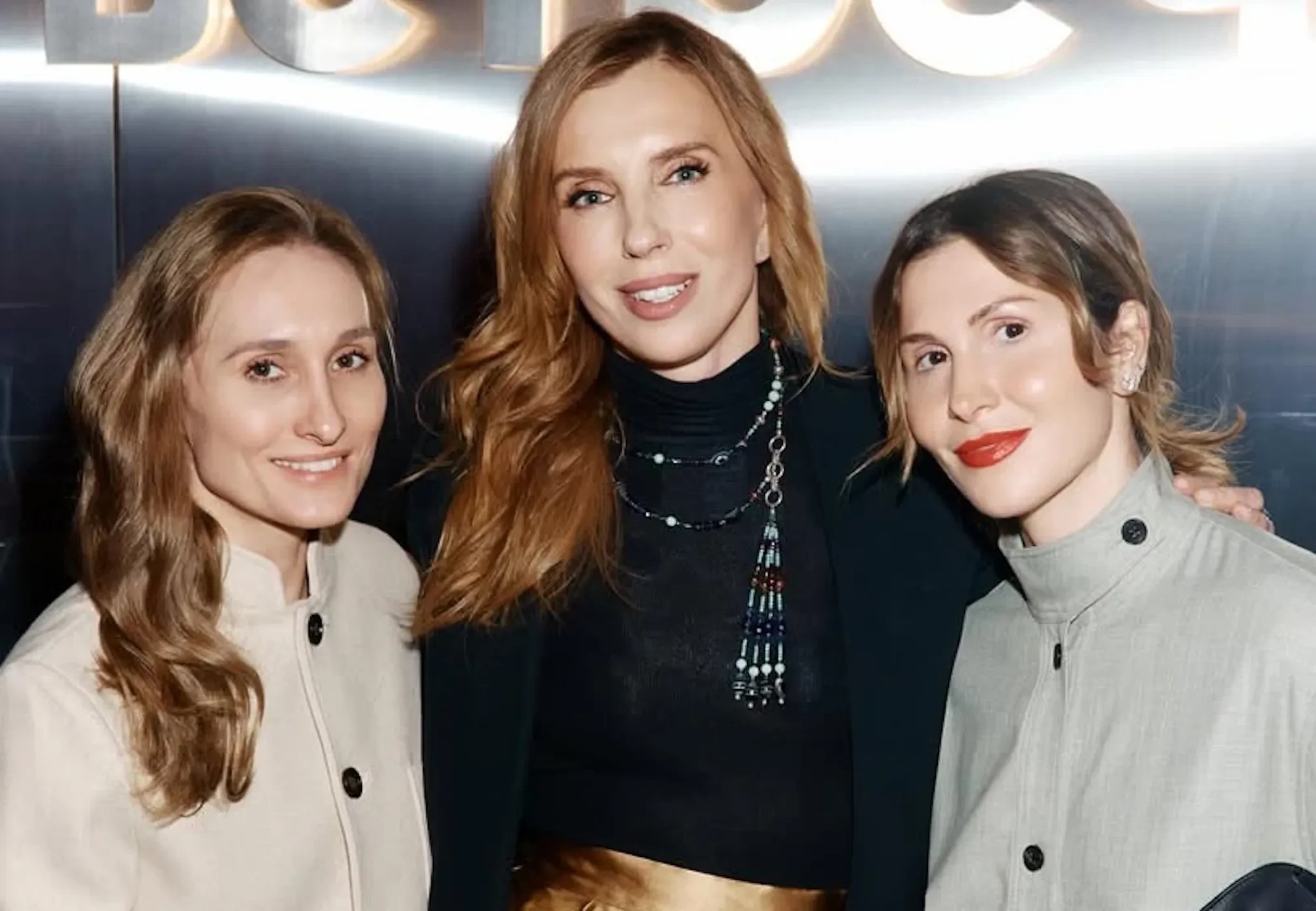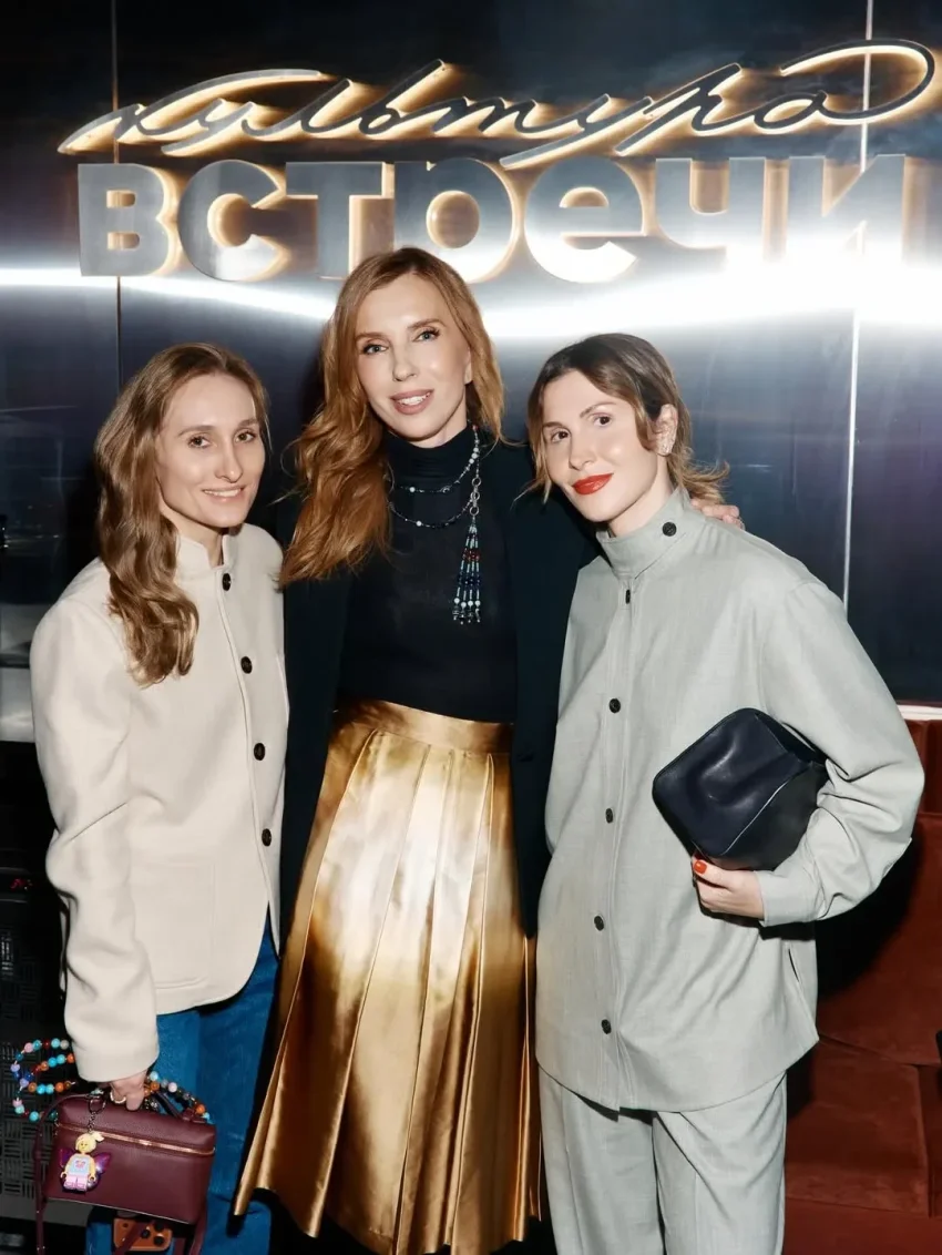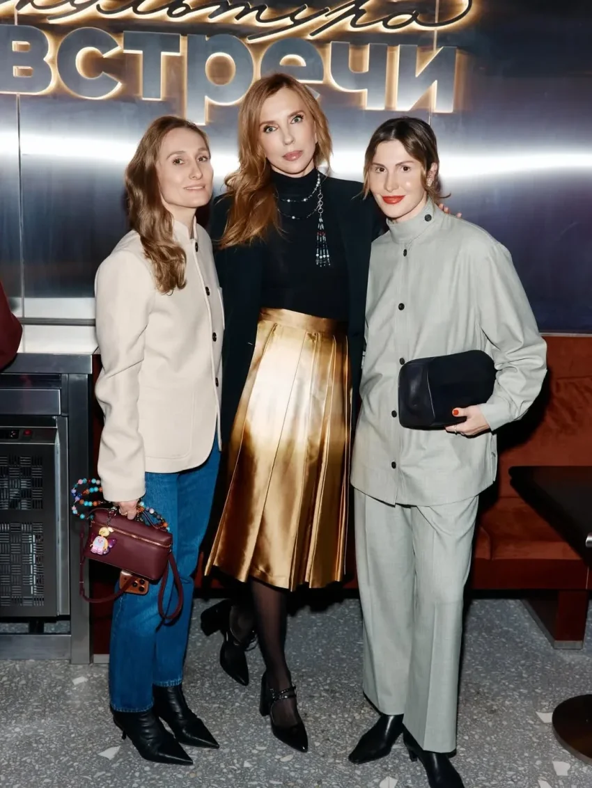 57-летняя Светлана Бондарчук пришла на ужин в золотой юбке и чёрной блузе, а Лаура Джугелия надела серый костюм.