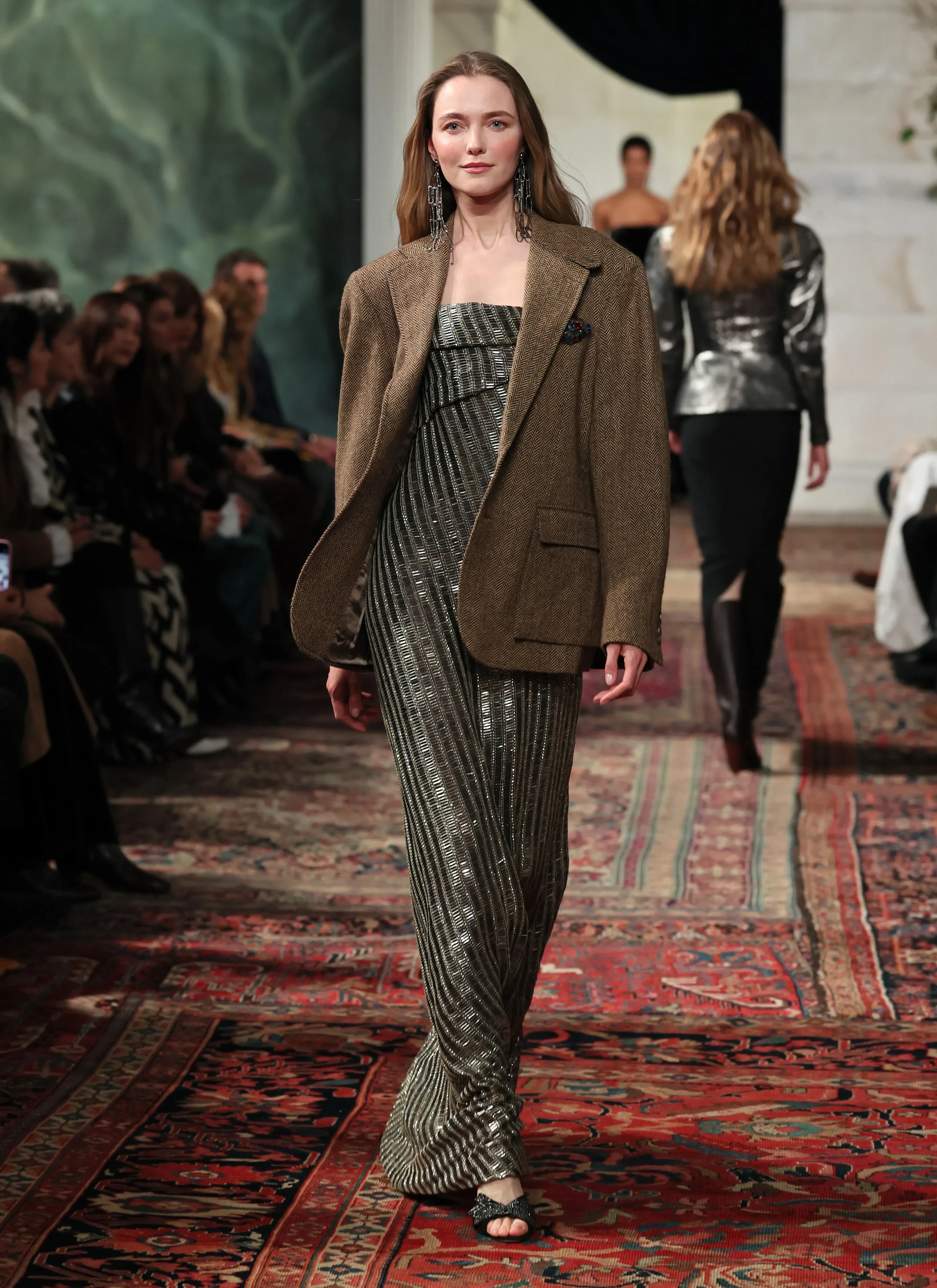 Леони ХаннеНа подиум на показе новой осенне-зимней коллекции Ralph Lauren вышли: 30-летняя супермодель Джиджи Хадид, звезда подиумов нулевых, 38-летняя Влада Рослякова, и многие другие. 86-летний основатель бренда и дизайнер Ральф Лорен вышел на поклон после шоу вместе с супругой Рики.