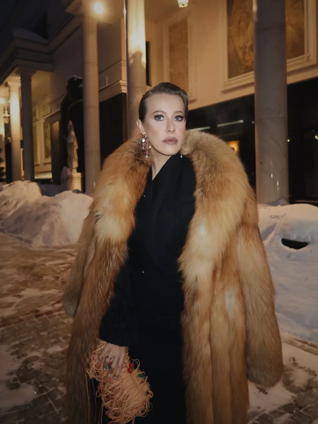 Ксения Собчак в мехах вышла в свет на фоне отставки своего мужа Константина Богомолова из Школы-студии МХАТ
