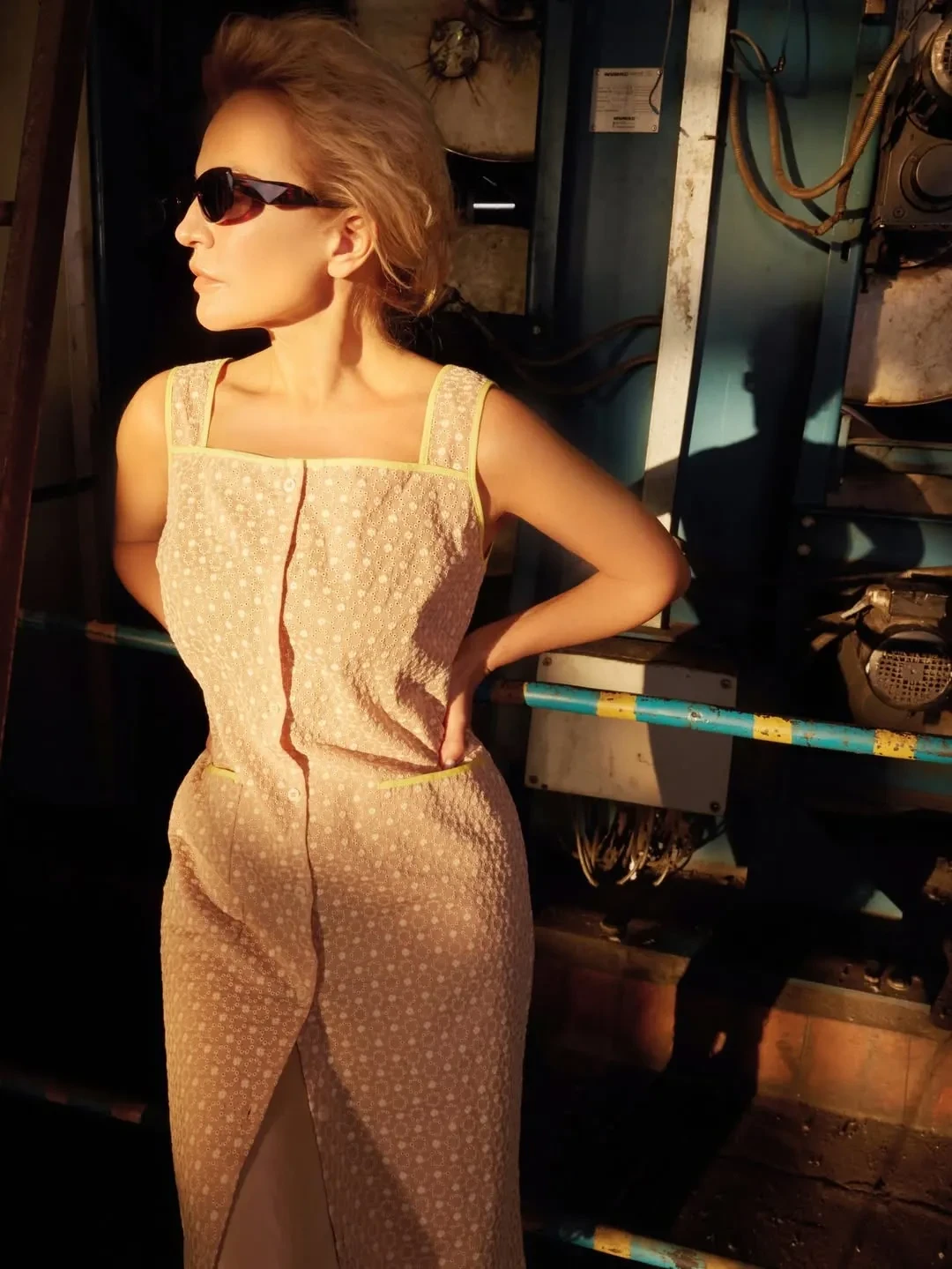 Виктория Шелягова в фартуке и сарафане снялась на швейной фабрике