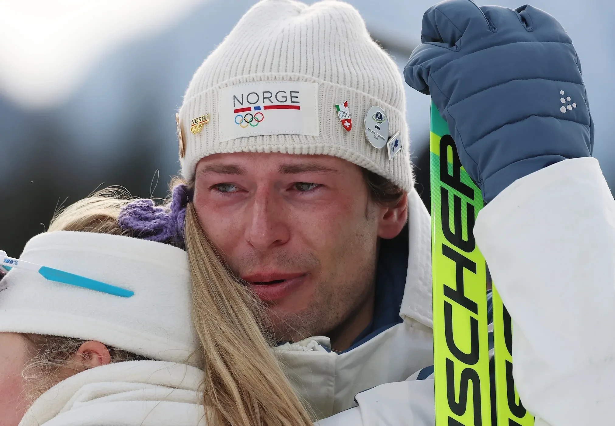 На церемонии награждения 28-летний биатлонист в слезах рассказал в прямом эфире журналистам, что встретил "любовь всей жизни", но причинил ей боль, изменив с другой.