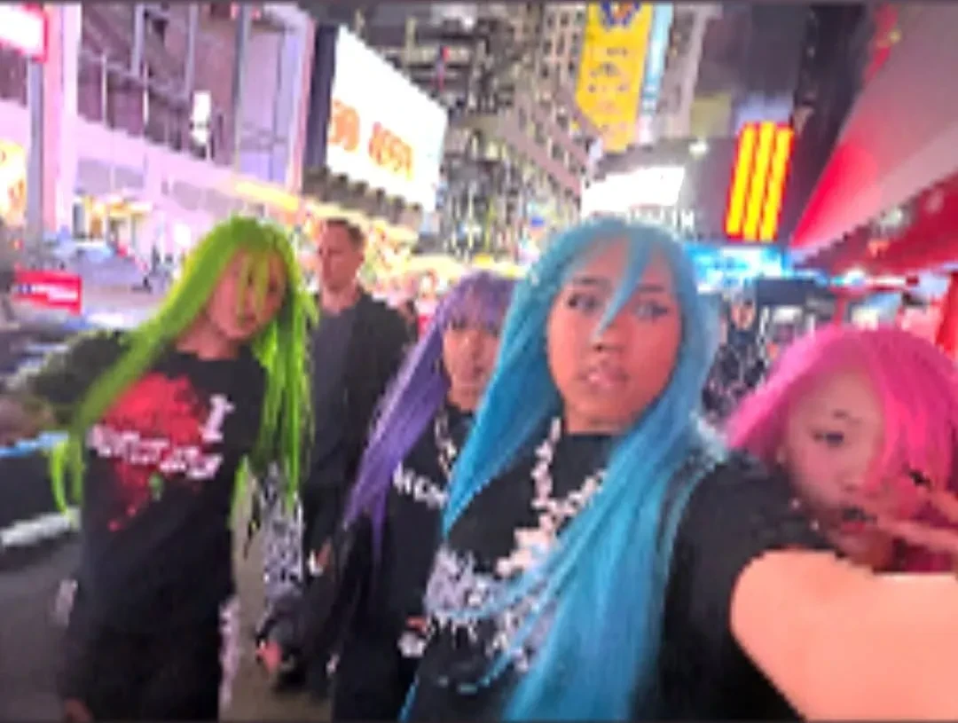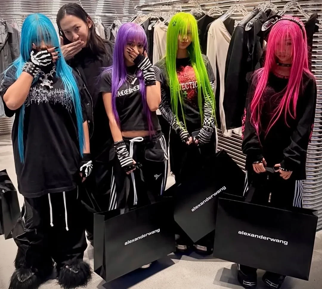 Норт Уэст надела вещи Alexander Wang: чёрную футболку и толстовку с принтом, ботинки с мехом, массивную цепь с черепом и дополнила образ длинными голубыми волосами. Подруги Уэст тоже примерили парики разных цветов. В таком виде подростки прогулялись по Нью-Йорку и встретились с дизайнером Александром Вангом. Его, кстати, пару лет назад "отменили" в модной индустрии после секс-скандала с обвинениями в домогательствах от моделей.