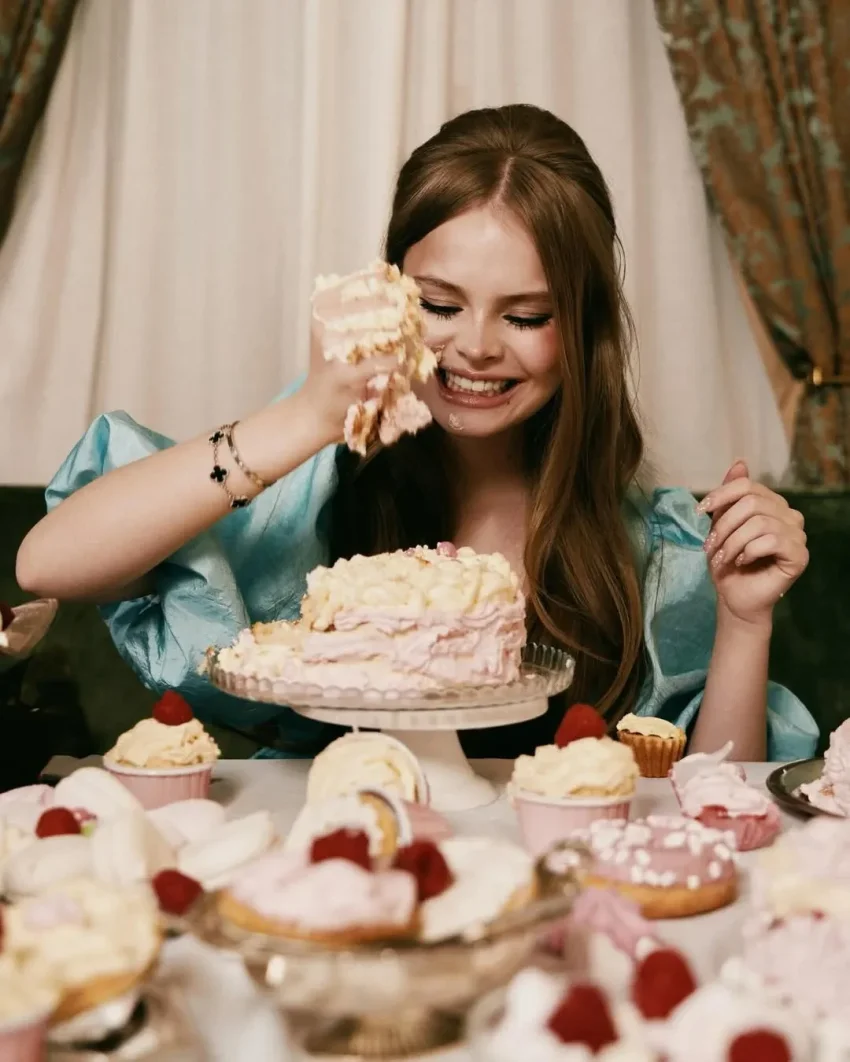Маирко (настоящая фамилия звезды тинейджеров) в мини-платье с декольте попозировала, лёжа на столе в окружении тортов и пирожных. "Сладкие 16", — подписала она кадры.