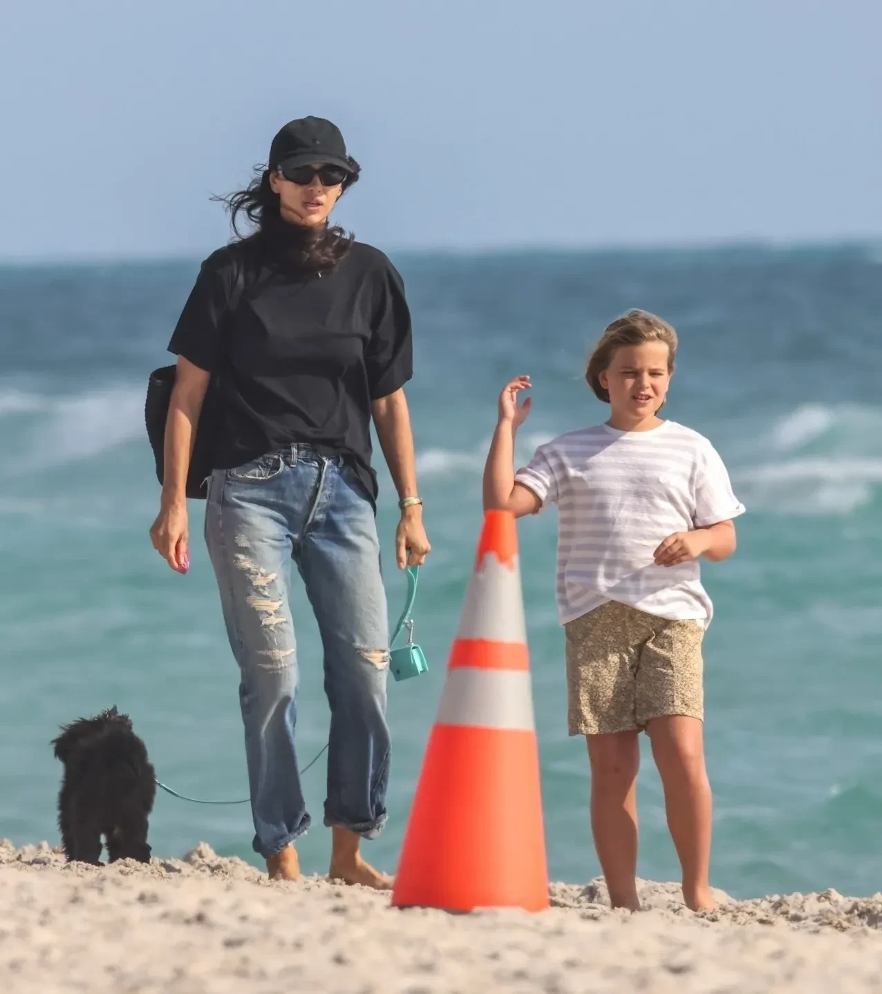 Мать и дочь вышли на прогулку рано утром вместе со своей собакой Арахисом. Ирина Шейк была одета в чёрную футболку, джинсы и кепку с солнцезащитными очками, а Лея — в шорты и футболку.