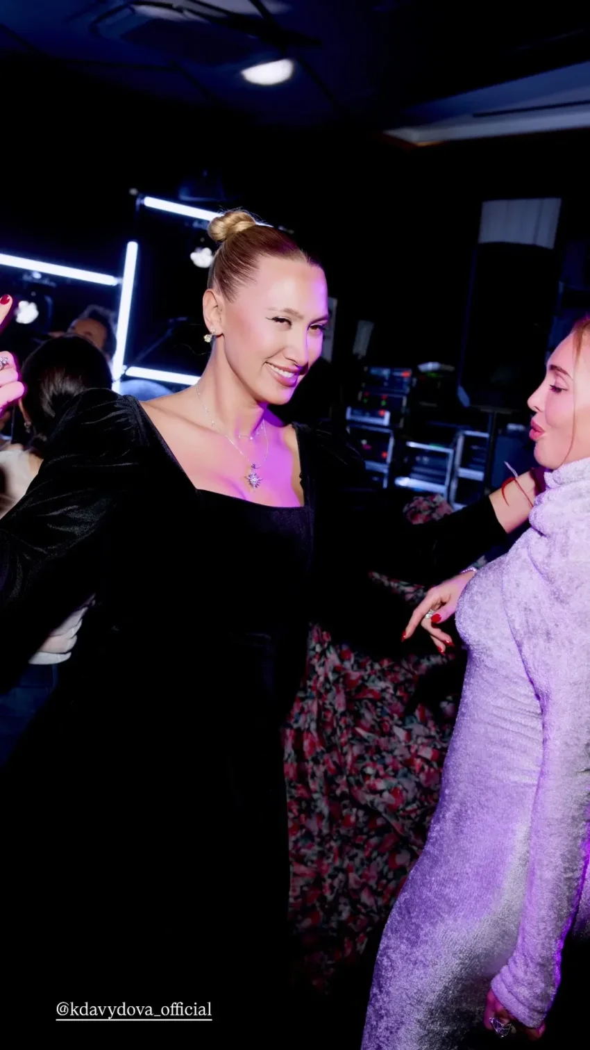 Буре сидела за одним столиком с Яной Рудковской и, судя по всему, пребывала в хорошем расположении духа: активно фотографировалась с другими гостьями и танцевала.