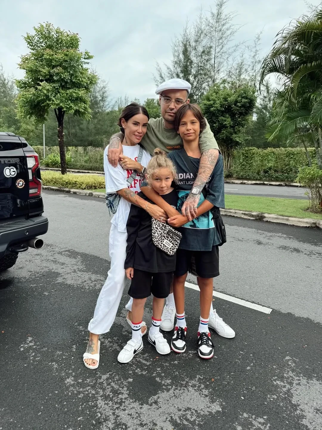 Айза Лилуна-Ай с сыновьями и Гуф Фото: aizalovesyou/Telegram, aizalovesam/Instagram*