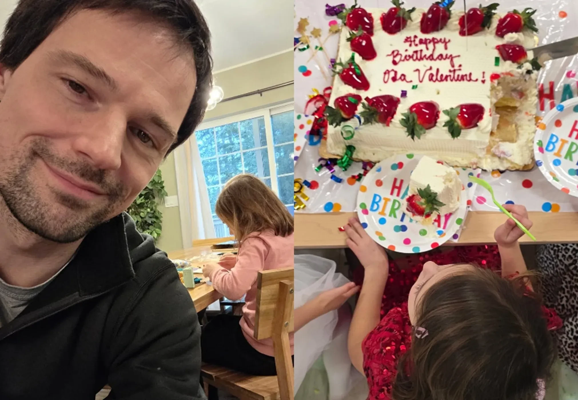 На снимках Ода Валентина запечатлена с 40-летним актёром на горнолыжном курорте и в домашней обстановке. На одном из фото девочка сидит за праздничным столом в нарядном платье.
