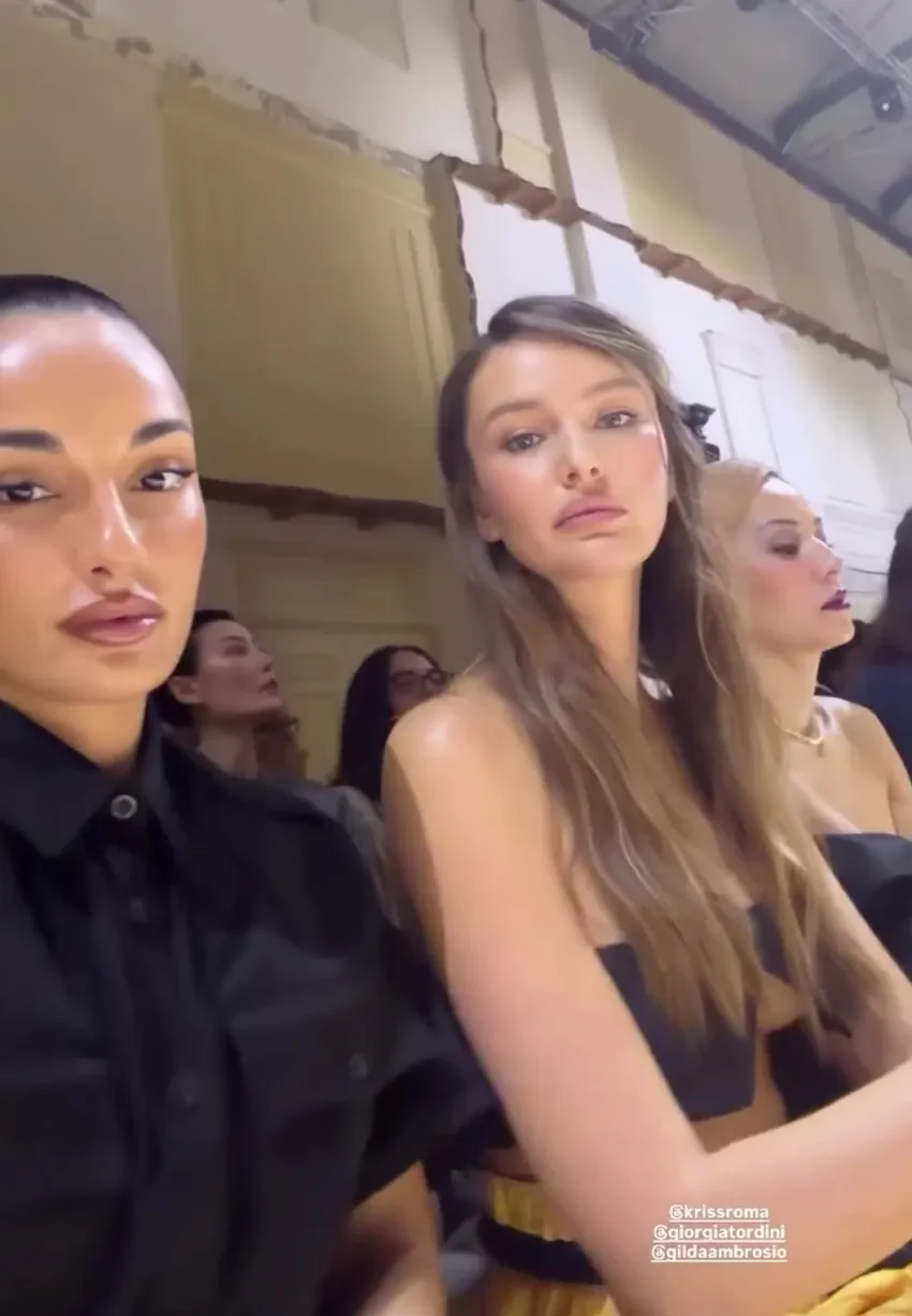 Неделя моды в Милане: Белла Хадид, Елена Перминова "без бровей", Ольга Карпуть, Оксана Бондаренко и Кристина Романова на показе Prada