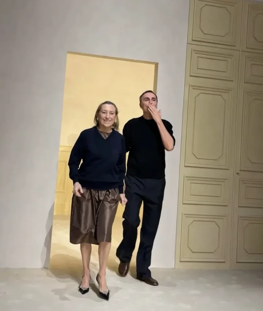 Миучча Прада и Раф Симонс после показа PradaРанее в Милане прошёл показ Fendi, который посетили Моника Беллуччи, Джессика Альба с 14-летней дочерью, Елена Перминова и Ума Турман.
