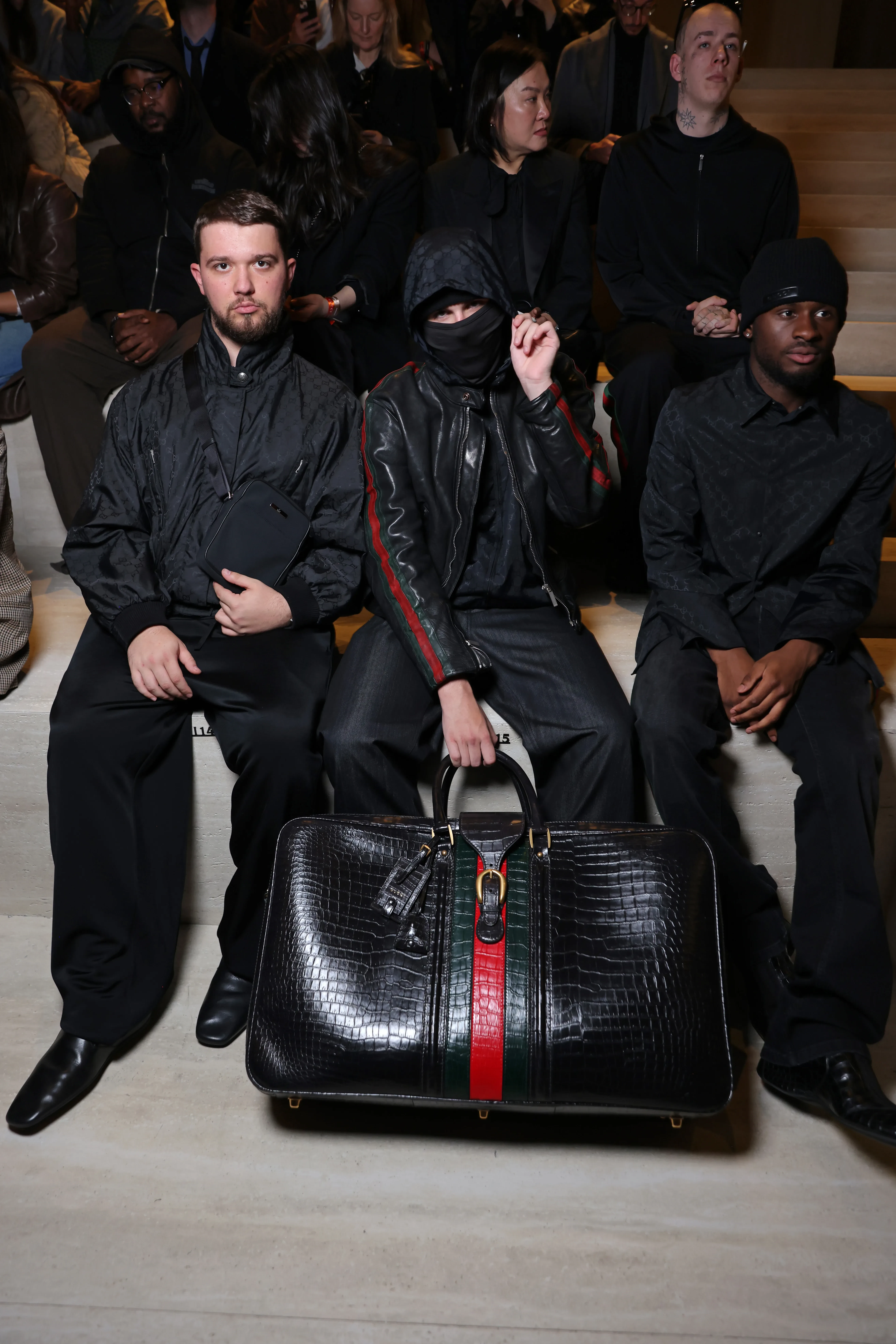 В Милане в рамках Недели моды состоялся показ дебютной коллекции нового креативного директора Gucci Демны Гвасалии. Поддержать дизайнера пришли многие знаменитости и друзья модного дома. В их числе Деми Мур, Рената Литвинова с дочерью Ульяной, Арина Соболенко, Донателла Версаче, девушка Марка Эйдельштейна модная художница Надя Ли Коэн, Пэрис Хилтон с сестрой Ники, сын Дэвида и Виктории Бекхэм Ромео, невеста Криштиану Роналду Джорджина Родригес, Ева Герцигова, Алессандро Микеле, Изабелла Феррари и британский рэпер EsDeeKid, за маской которого, по слухам, скрывается Тимоти Шаламе.