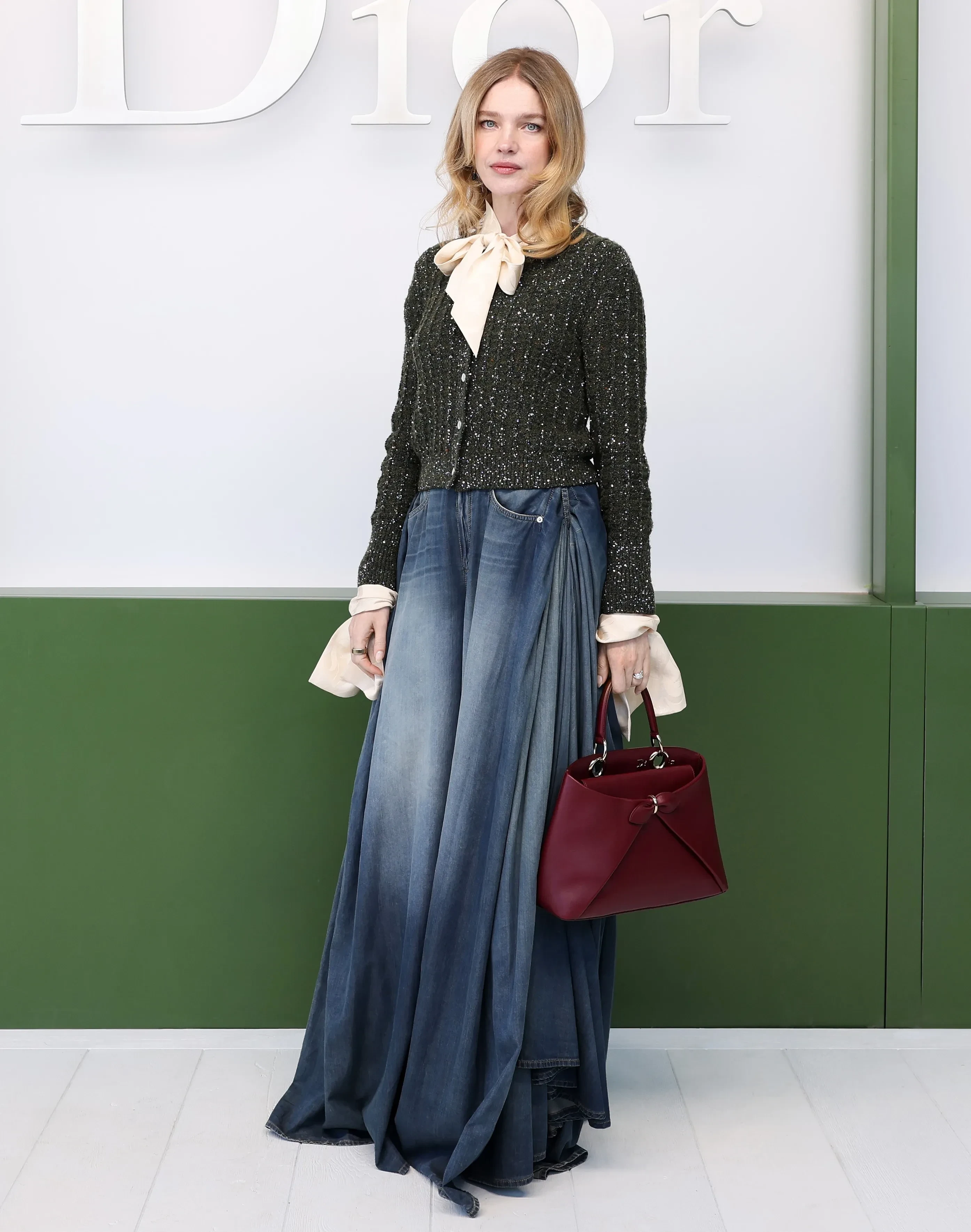 44-летняя супермодель позировала фотографам в тотал-луке Dior и без мужа. 48-летний сын владельца конгломерата LVMH Бернара Арно Антуан присоединился к супруге перед показом. Они сидели в первом ряду, а после шоу встретились с креативным директором модного дома Джонатаном Андерсоном.