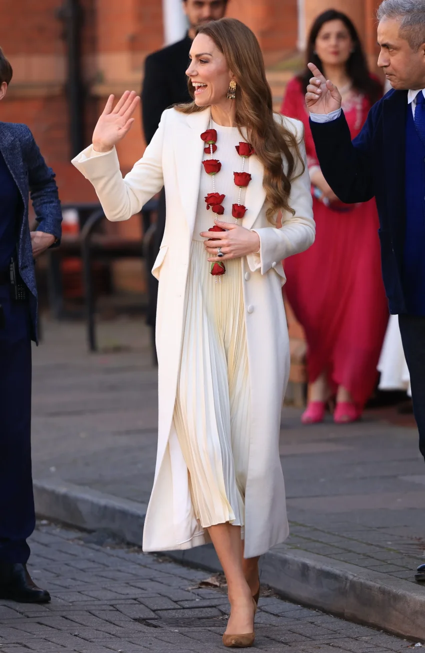 Кейт Миддлтон в ожерелье из роз встретилась с индийской общиной и отпраздновала фестиваль красок Холи