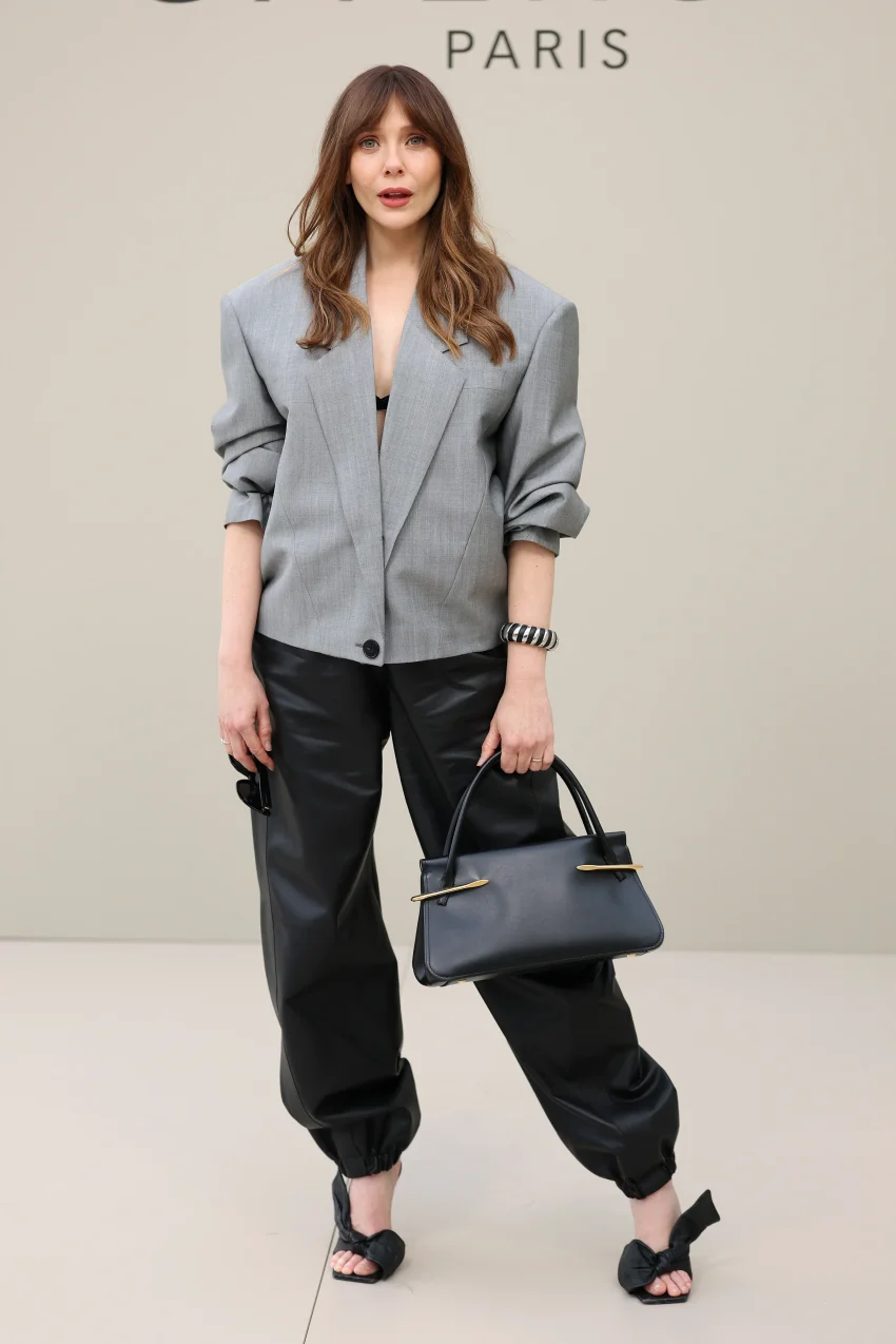 Кьяра ФерраньиУже ближе к вечеру свою коллекцию представил Givenchy. 37-летняя Элизабет Олсен пришла на шоу в сером жакете и чёрных кожаных джоггерах, дополнив образ сумкой, браслетом и босоножками с бантами. 49-летняя Диана Крюгер, блиставшая до этого на показе Isabel Marant, выбрала чёрный комплект из топа и юбки-миди, а нечастая гостья подобных мероприятий 40-летняя Руни Мара надела "на голое тело" синий брючный костюм в полоску.