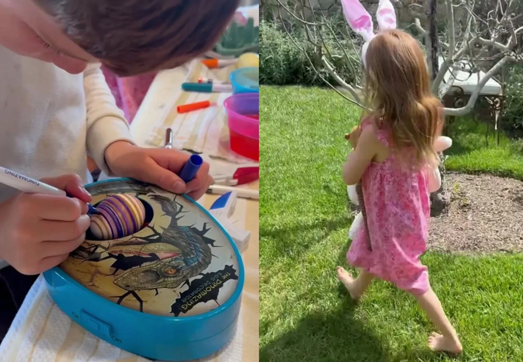 44-летняя герцогиня Сассекская показала, как семья отметила праздник: шестилетний Арчи и четырёхлетняя Лилибет раскрашивали традиционные пасхальные яйца, а затем в нарядах пасхальных кроликов бегали по саду в поисках угощений.