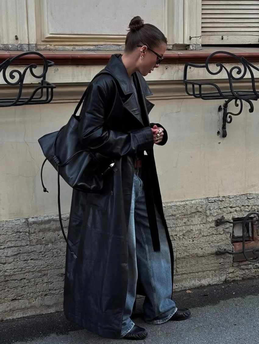 Её фишка — двойная сущность: модель можно носить кожаной стороной или тканевой, меняя настроение образа.