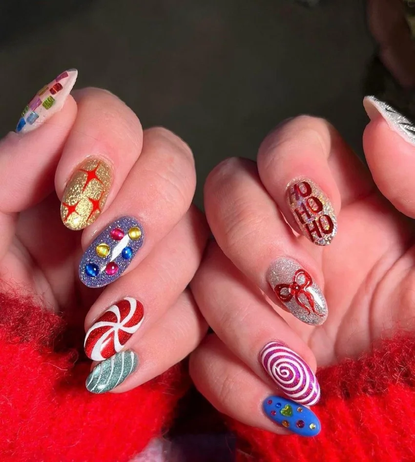 Перед праздниками фантазия может быть особенно смелой. Дофаминовый маникюр не обязательно должен быть сложным, но он всегда привлекает внимание. Среди популярных идей: