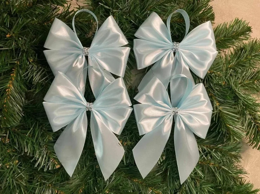 Используй шелк, бархат, плюш или полупрозрачную органзу. Для максимального шика ленты можно расшить бусинами или стеклярусом. Банты отлично работают не только как замена мишуре, но и в роли елочного наконечника: самый большой — на макушку, а поменьше — по всей высоте. Цвета выбирай либо контрастные, либо в тон игрушек: красный, розовый, золотой и серебряный всегда выглядят празднично.