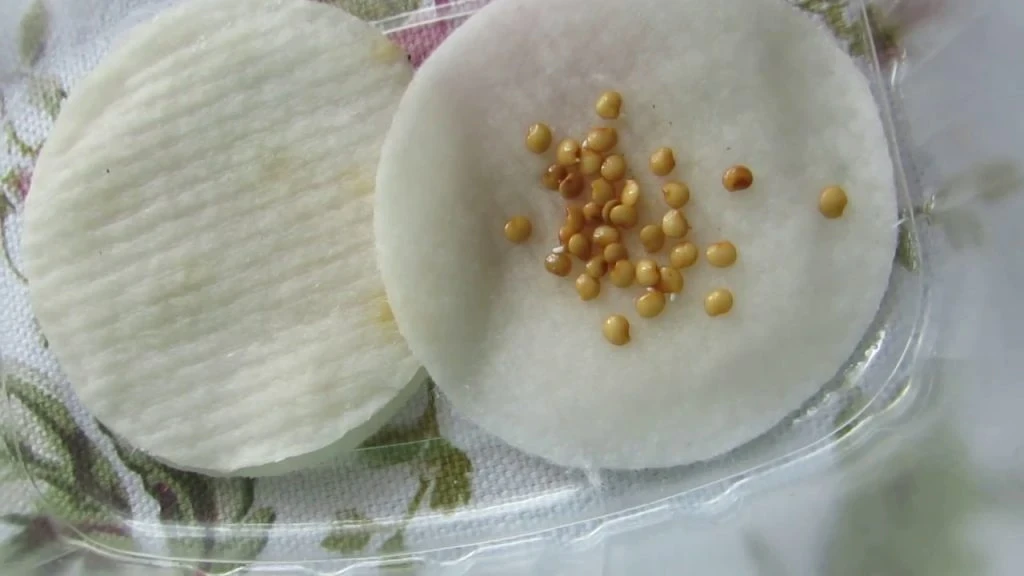 Разложите семена. Поместите их на влажную ткань, марлю, ватные диски или фильтровальную бумагу. Сверху накройте вторым слоем влажного материала.