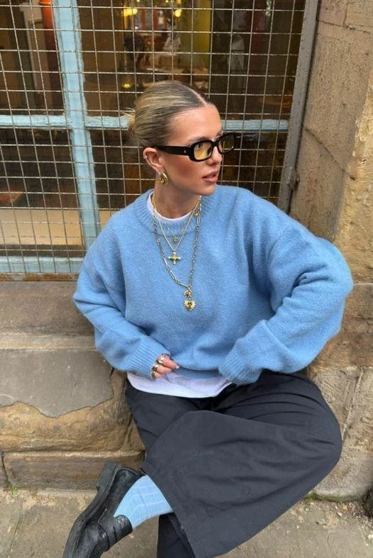 Лучше всего ледяной голубой раскрывается в минималистичных силуэтах: свободные рубашки, прямые брюки, лаконичные тренчи. Важно не перегружать образ деталями — этот цвет сам создает нужное настроение.