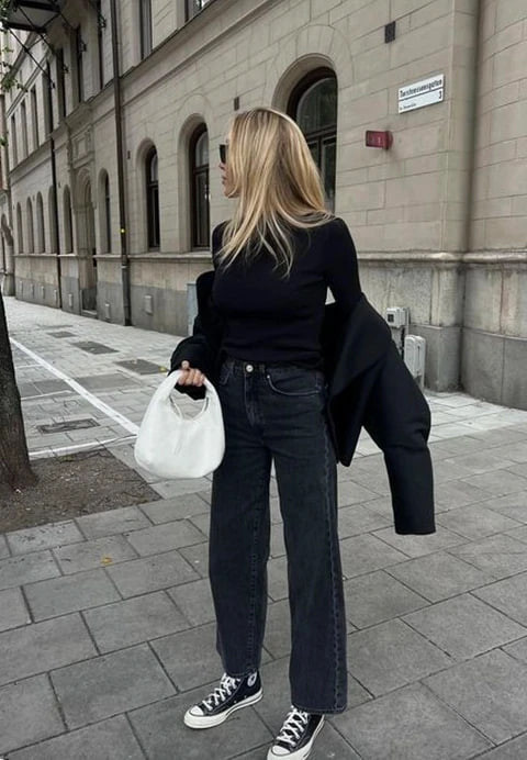 С чем носить: укороченные топы, футболки, массивные кроссовки, лоферы. Главное — избегать объемного верха.