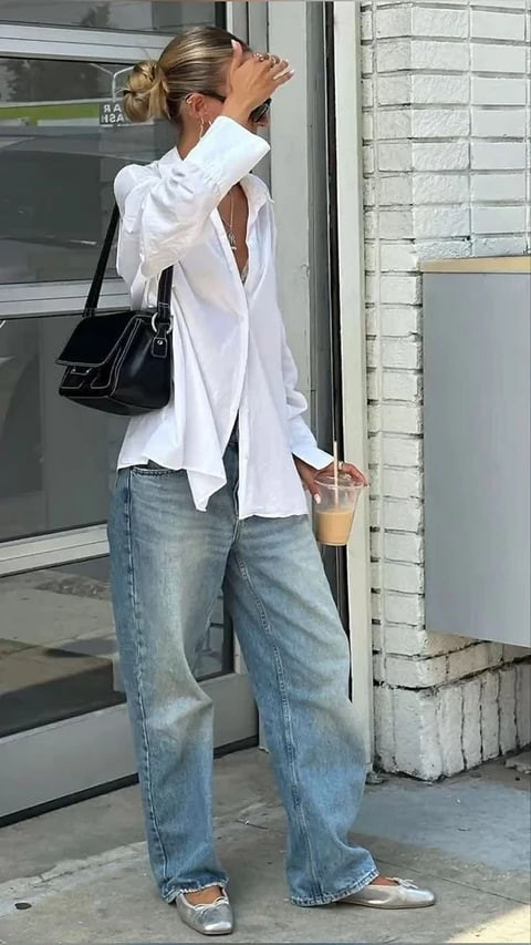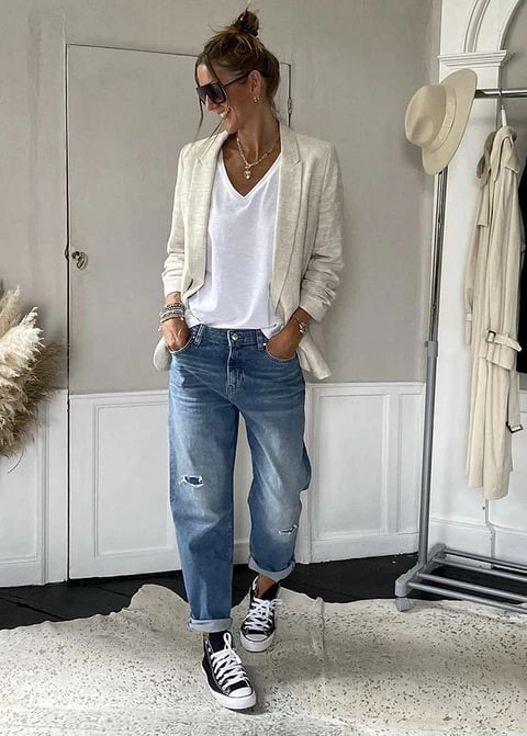 Свободные, немного грубоватые, как будто снятые с парня. Подходят тем, кто хочет скрыть бедра или добавить образу расслабленности.