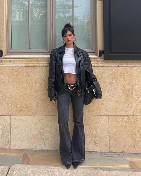 С чем носить: кроп-топы, массивные кроссовки, яркие детали. Балансируй объем верхом.