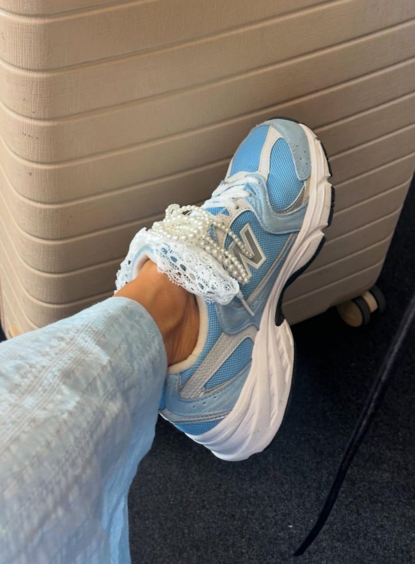 Баланс между женственностью и дерзостью — массивные сникеры с трековой подошвой теперь на пике. Вдохновением стали модели от Balenciaga, Prada и Miu Miu: тяжелая форма, скульптурный протектор и нарочитая грубость делают эти кроссовки центральным элементом образа.