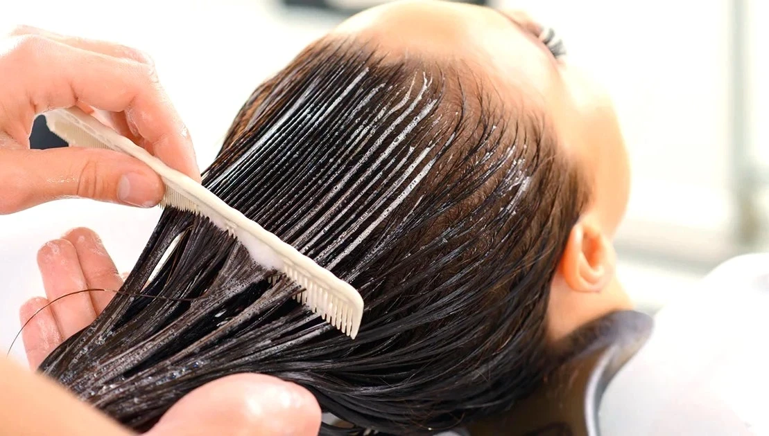 Наносите состав по проборам на кожу головы, мягко массируя кончиками пальцев.