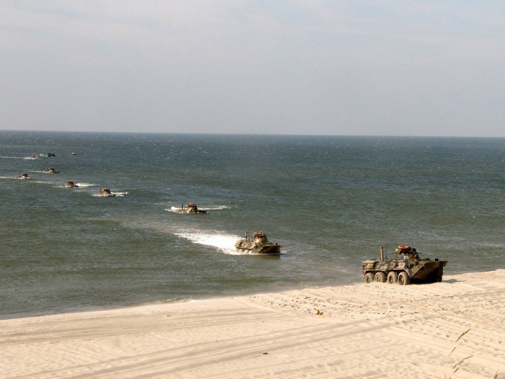 На минувшей неделе в рамках совместного оперативного учения «Щит Союза-2015» под руководством командующего Балтийским флотом вице-адмирала В.Кравчука на полигоне Хмелёвка состоялось тактическое учение по высадке морского десанта на необорудованное побережье.