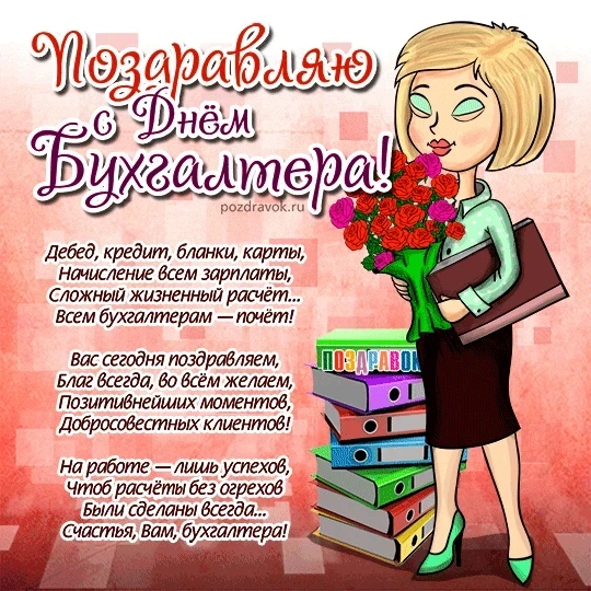 Бухгалтеры, с профессиональным вас праздником! Желаю карьерного роста, хороших доходов, поменьше отчетов, хлопот и забот. Больше душевного спокойствия, семейного благополучия, незабываемых приключений, новых путешествий, умопомрачительных событий и пусть всегда вас сопровождают счастье и удача.