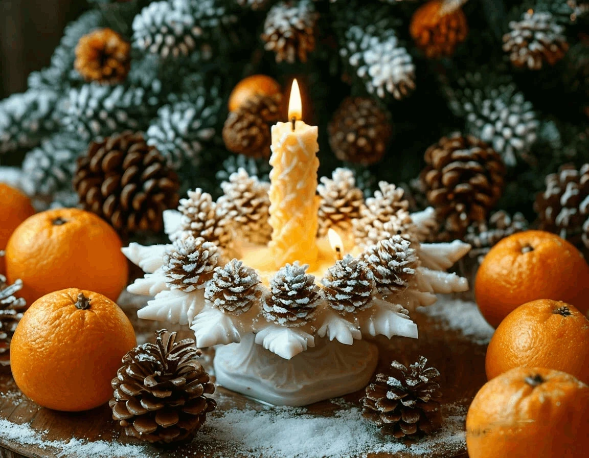 • Шишки, мандарины, конфеты и орехи на елке или рядом символизируют сытость, радость и благополучие.