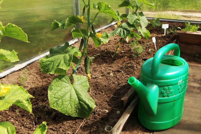 В закрытом грунте условия иные: температура выше, поэтому полив здесь чуть чаще, но порции воды делают меньше. При этом нельзя забывать о проветривании теплицы. Оптимальная влажность — около 80%, это защитит огурцы от паутинного клеща и других вредителей.